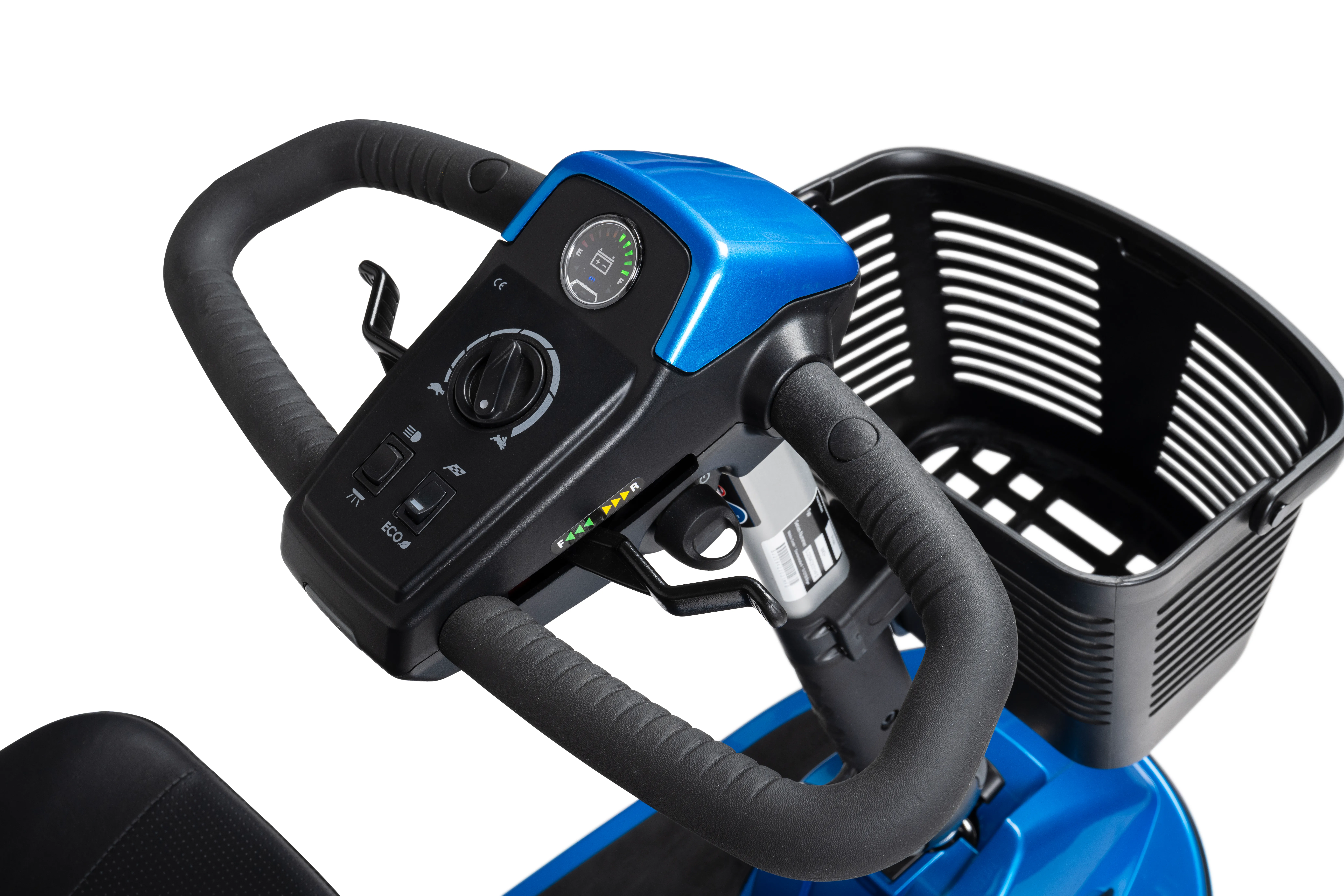 Ein Elektromobil mit 3 Rädern für den täglichen Einsatz, auch für großgewachsene Personen eine kompakte und komfortable, vollgefederte, sowie leicht zerlegbare Allround-Variante. In den Farben blau und anthrazit erhältlich!