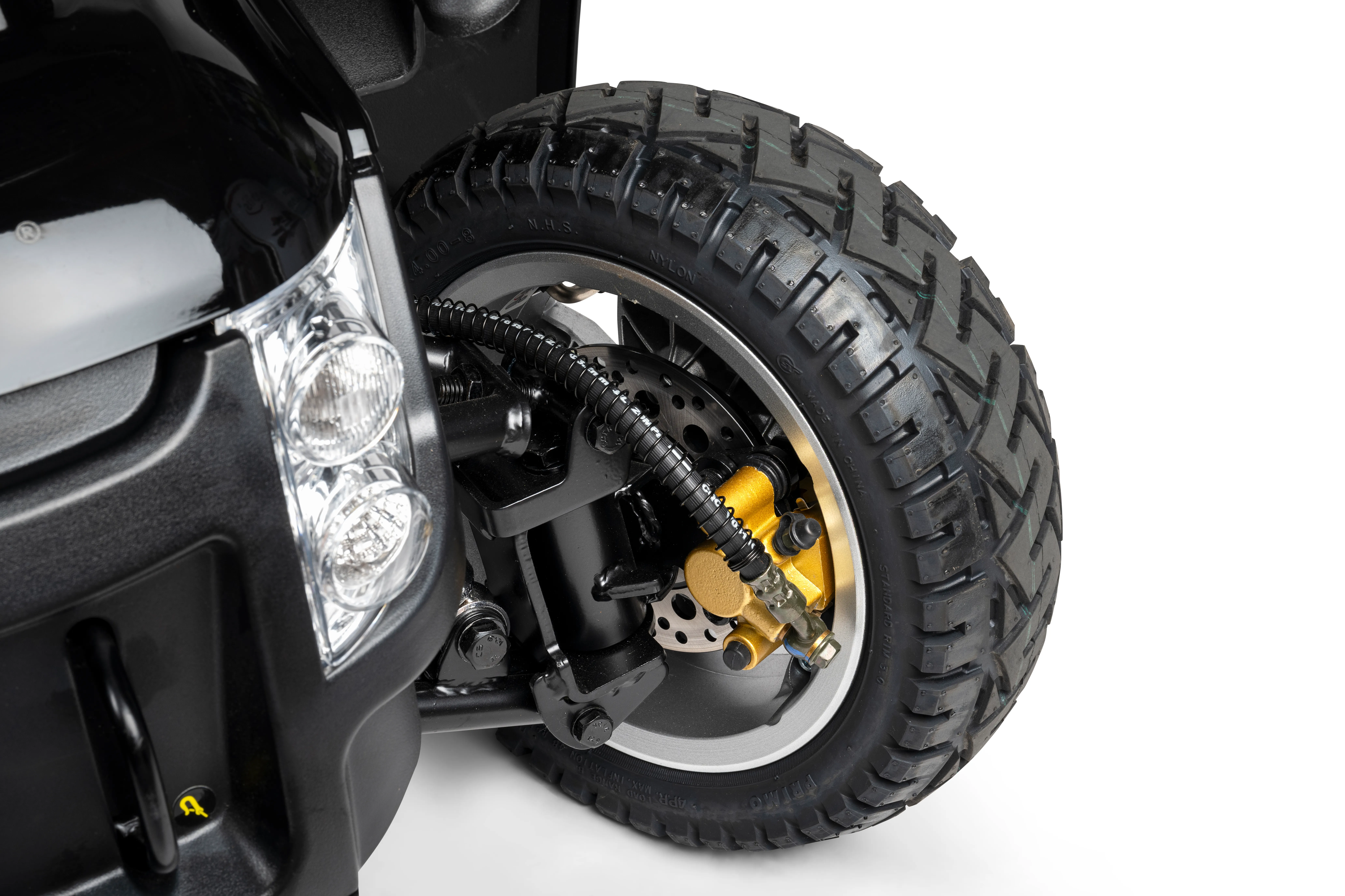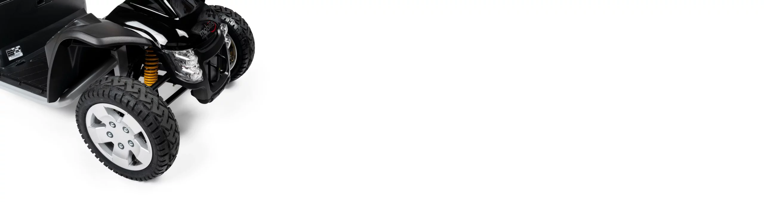 Große Räder mit Aluminiumfelgen, die Wendigkeit und eine große Beinfreiheit machen das Fahren zum Dahingleiten . . .